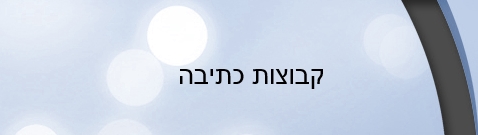 • קבוצות כתיבה לילדים בגילאי ביה"ס לשם שיפור היכולות הגרפומוטוריות וההתארגנות במחברת תוך מתן אסטרטגיות למידה לשם העתקה וכתיבה נכונה.