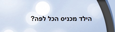 הורים רבים מתלוננים כי ילדם מכניס חפצים או בגדים לפה. הצווארונים רטובים, השרוולים עם חורים וכל העפרונות אכולים. כמו כן נשמעות אף תלונות של הכנסת אוכל רב לפה, או לכלוך הסביבה בעת אכילה. במקביל ניתן לשמוע תלונות מהורים על הימנעות מאוכל, בררנות באוכל, ובררנות בצורת ההגשה כך שאף מאכל לא יגע במאכל האחר. נו... אז מה עושים?